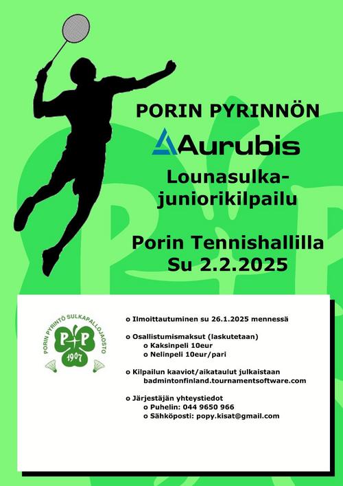 Lisätietoja PoPyn lounasulkavastaavalta (Miia, 0447131277, popy.sulkis@gmail.com) tai kisajärjestäjältä (Arttu, 0449650966, popy.kisat@gmail.com)