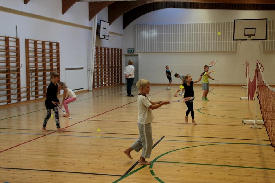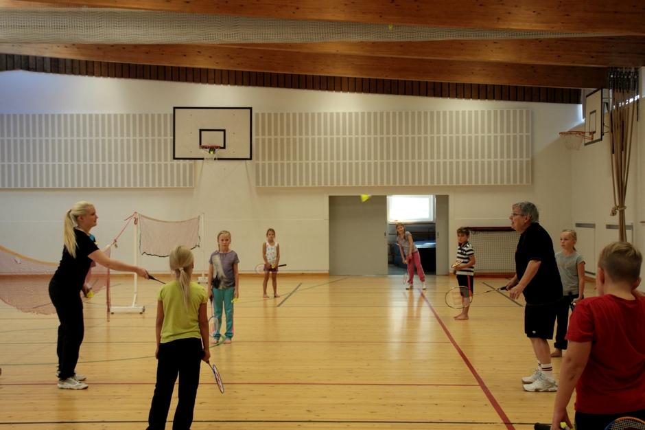 Sulkapallojaoston ryhmäkyva otettu tennishallilla toukokuussa 2014. kuvasta puuttuu noin 30-40 pelaajaa.