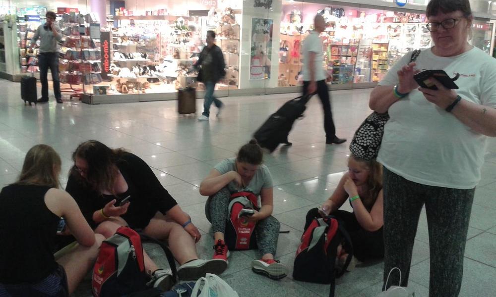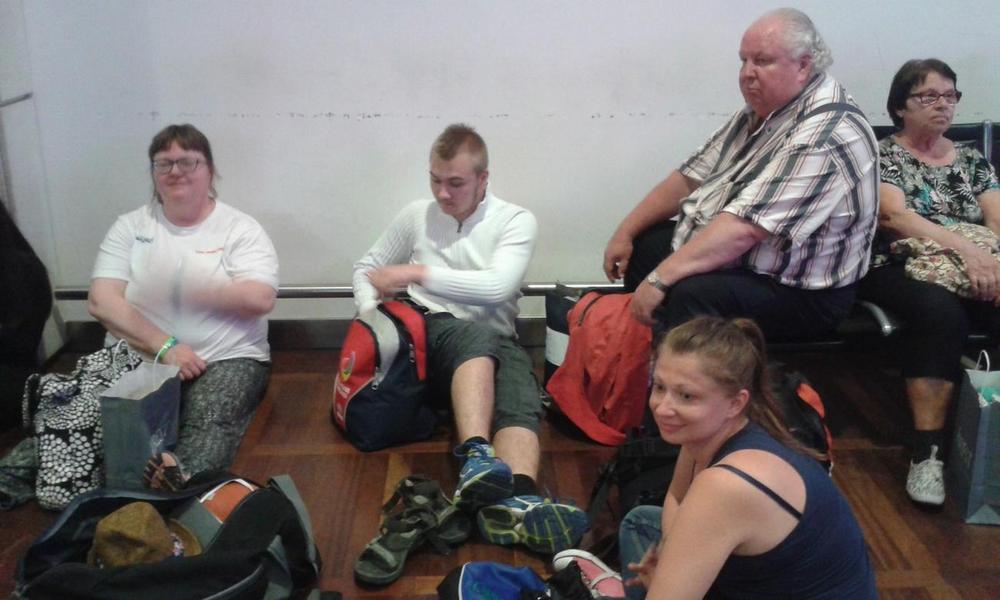 Stralsund Saksa 25-26.4.2009 PoPy:n joukkue hallin edustalla